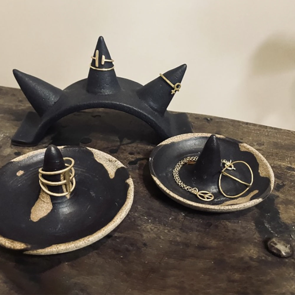 Handmade ceramic jewelry trays with ring cones/holders. Let us know with your order which one if you have a preference. Left/Right in the photo.
